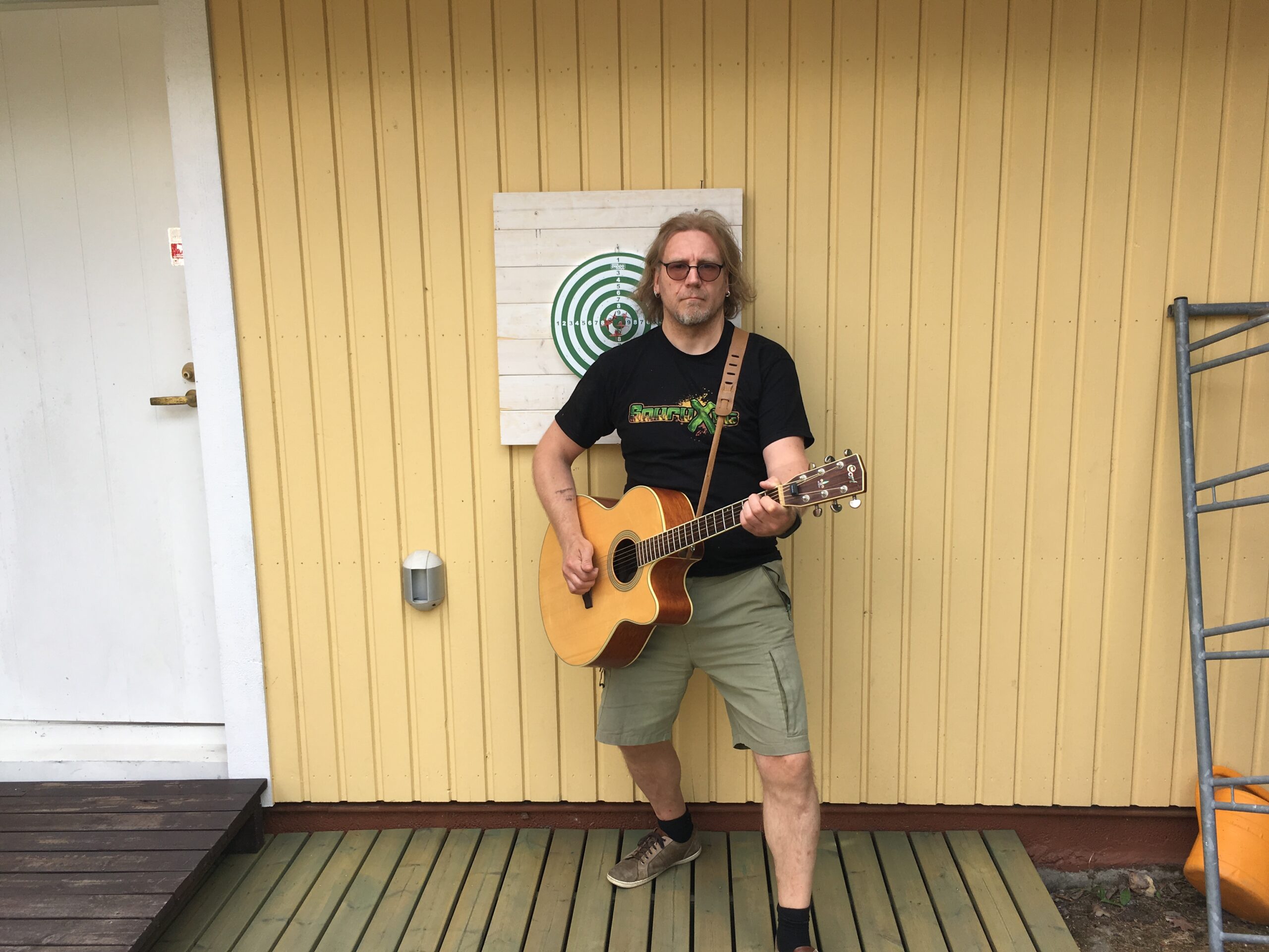 Mies ja kitara sekä suomipoppia.